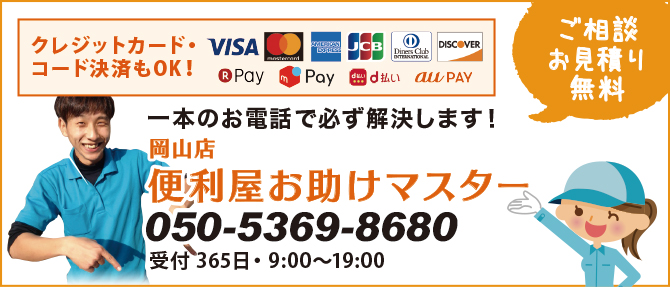 しかし、便利屋お助けマスター岡山店は見積もり通りの請求を徹底していますので、安心してご依頼ください。